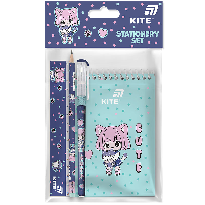Канцтовари для дітей Kite виготовлені з якісних матеріалів, з урахуванням потреб і особливостей учнів. Так, кулькові ручки мають гумовий грип, щоб іще не натреновані пальці не ковзали. Гумки різних форм і розмірів стирають слід олівця без розводів. Кольорові олівці малюють м'яко та яскраво. У зошитах з якісним білим папером писати легко та приємно. У яскравих блокнотах Kite діти із задоволенням ведуть свої записи і зберігають заповітні таємниці.